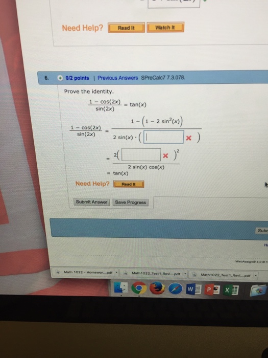 1 Tan 2x 1 Cos 2x Sin 2x 2sin 4x 1 Sin 2x Trigonometric Identities Mcr3u Youtube